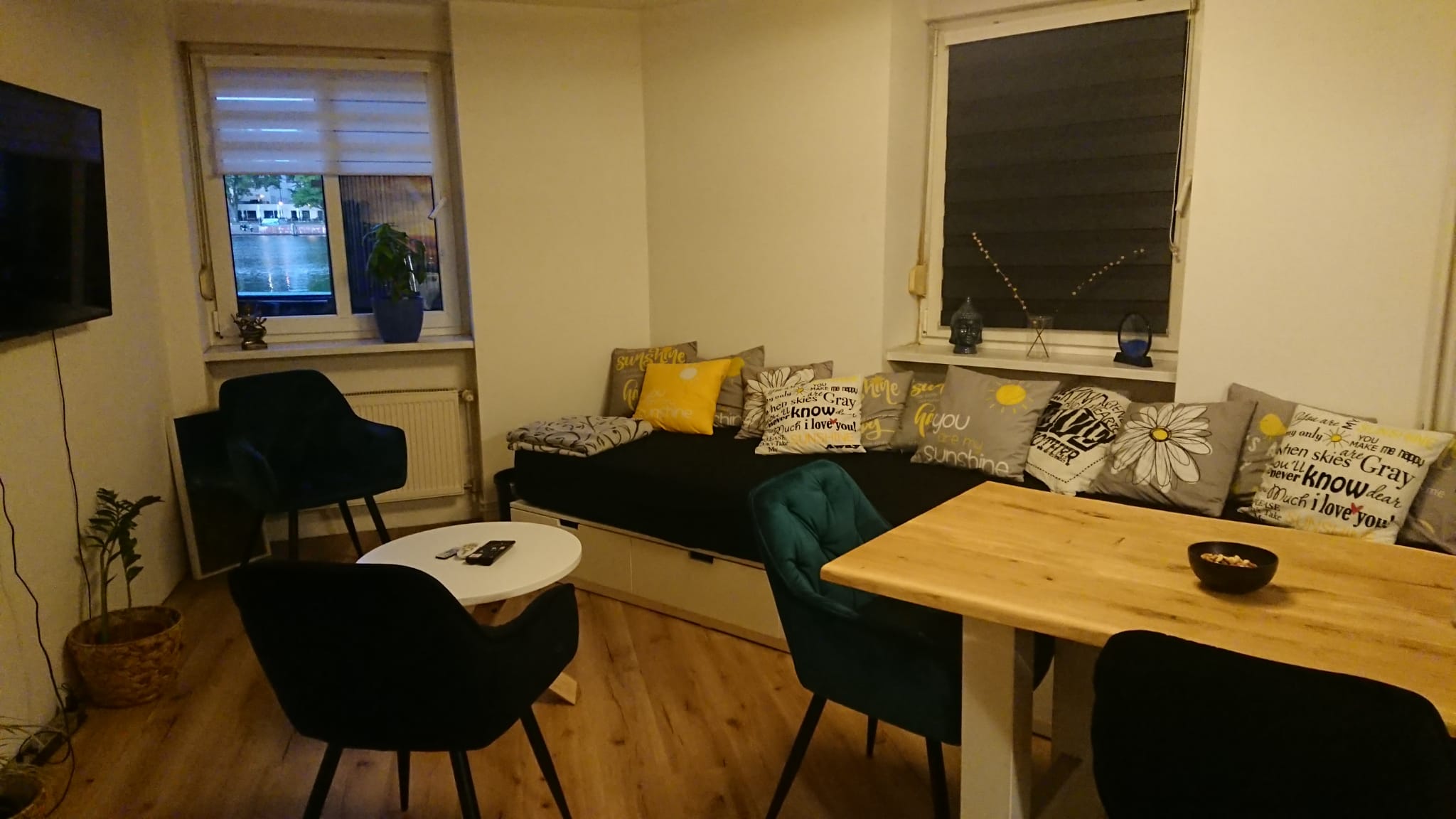 Sonnige 4-Raum-Wohnung am Wasser mit Loggia, Garten und Grillecke. Schwimmen in der Dahme oder entspannen im kleinen Pool. 2 Sup Paddel könnt ihr bei uns vor Ort Ausleihen. In der Küche findet Ihr alles was ihr zum Kochen benötigt. Sowie Wasserkocher und Kaffeemaschine. Es gibt im Schloss Zimmer mit ein Doppelbett 180 x 200. Im Wasser Zimmer gibt es ein Doppelbetten 140 × 200, im Park Zimmer sind zwei Einzelbetten auch zusammenlegbar sowie im Wohnzimmer eine Schafcouch sowie zwei 90 × 200 Matratzen. WLAN ist bis in den Garten. TV, Bettwäsche und Handtücher sowie Toilettenpapier sind vor Ort. Es gibt eine Waschmaschine / Trockner und Spülmaschine, ein Bügeleisen ein Bügelbrett und ein Wäscheständer. Das Badezimmer ist klein aber hat eine Badewanne und eine Regendusche. Das Zentrum ist in 35min mit der BVG erreichbar. Vorne an der Hauptstraße gibt es ein großer Parkplatz. Zum Ausladen kann man kurzzeitig in der Auffahrt gegenüber stehen bleiben.